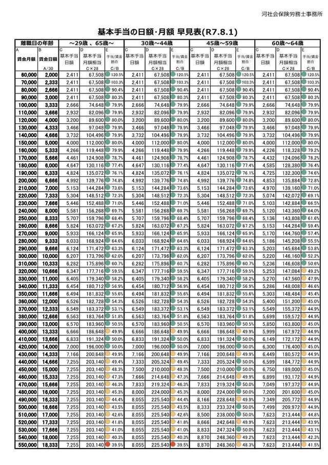 令和5年8月からの、だいたいの基本手当日額と月額を知りたいなら、